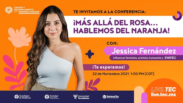 En esta conferencia, Jessica Fernández, influencer feminista, activista, humanista y EXATEC. Nos hablará de: “Más allá del rosa… Hablemos del naranja”,. ¡Únete y sumemos esfuerzos para erradicar la violencia de género!